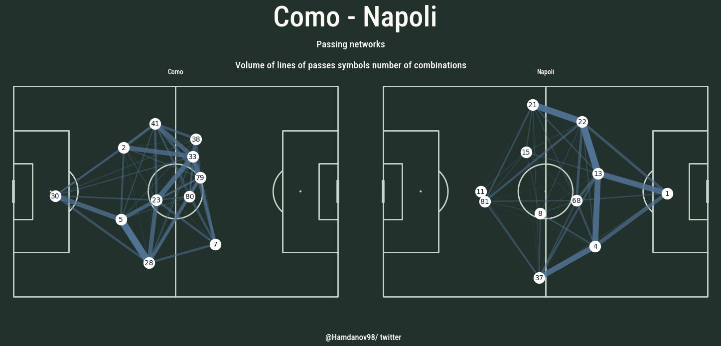 Como’s approach revolves around intelligent use of space, particularly in midfield. Unlike many modern teams that invert full-backs to create numerical advantages centrally, Como keeps their back four intact for defensive security. Instead, they create midfield overloads through inverting wingers or dropping a striker into deeper areas, ensuring they always have passing options and control in central zones.